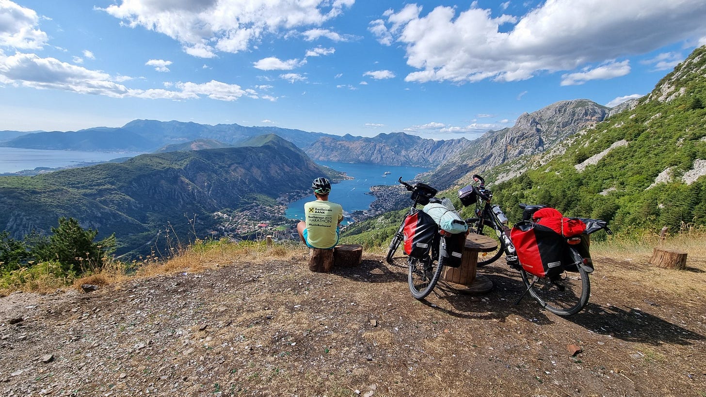 Despre Golful Kotor auzisem multe cuvinte de laudă, însă acesta este într-adevăr un loc pe care trebuie să îl vezi cu ochii tăi, ca să crezi că este adevărat. Aici muntele chiar se întâlnește cu marea! Iar istoria, cu valurile ei de schimbare care se succed inevitabil, și-a pus la rându-și amprenta: urme ale civilizațiilor europene sunt bine conservate, așteptând curioșii care să le descopere. Intrăm în orașul vechi pe rând, pe jos, pentru a nu ne chinui cu bicicletele încărcate prin puhoiul de oameni. De la fiecare local miroase îmbietor, însă eu nu sunt cu ochii după mâncare, ci după clădirile vechi (în special biserici), cu arhitectură deosebită. Bineînțeles, stau în acest loc mirific mult prea puțin - dar suficient cât să îmi doresc să mai vin și altă dată.